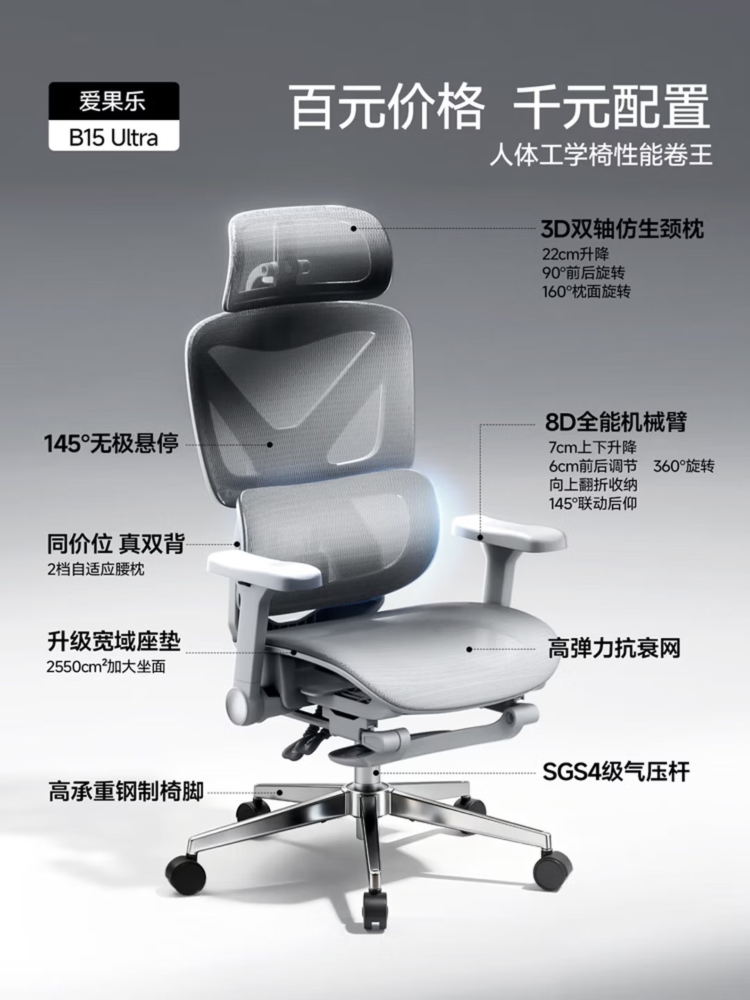 B15人体工学椅电脑椅办公椅子人工力学座椅久坐电竞椅学习椅